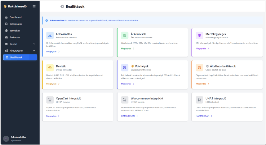 Főként webshop tulajdonosoknak. Kezeli a bevételezést, kiadást, leltározást és szinkronizál a rendelésekkel.